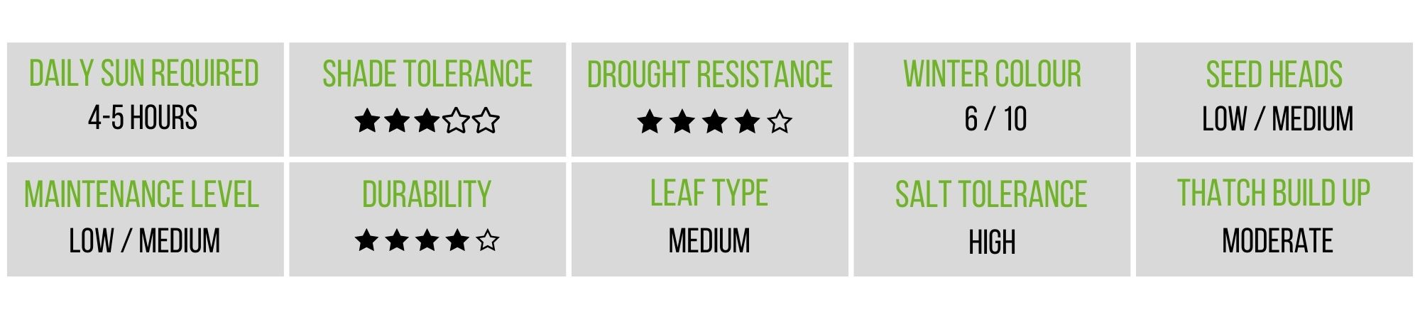 Empire forms a thick, resilient lawn that performs best with a minimum of 5 hours of sun daily, and develops strong drought tolerance once established. Its slower growth rate means fewer mows compared to faster-growing grasses, making it especially suited to homeowners wanting a durable, attractive lawn that stays looking sharp without becoming high maintenance.